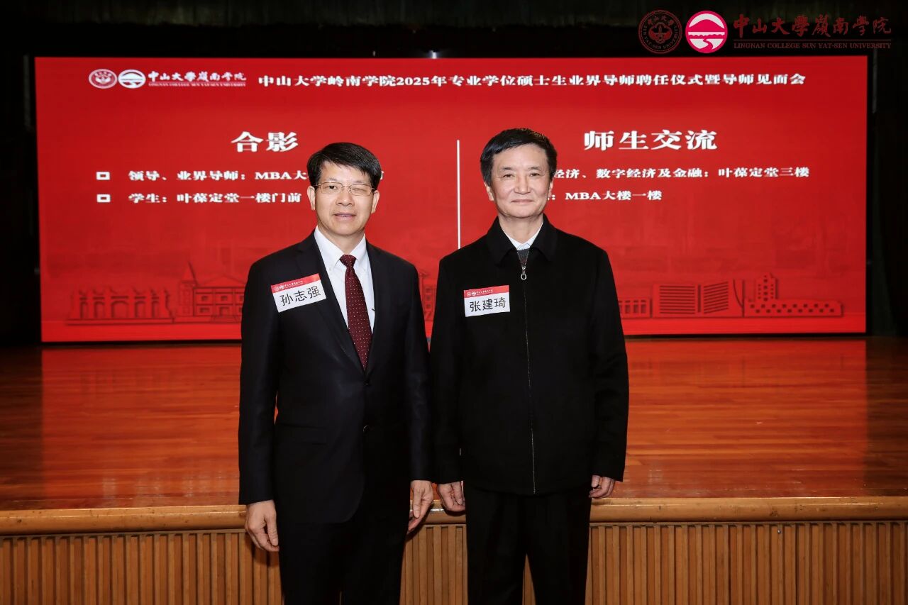 圖:孫志強(qiáng)董事長在中山大學(xué)嶺南學(xué)院2025年專業(yè)學(xué)位碩士生業(yè)界導(dǎo)師聘任儀式上留念