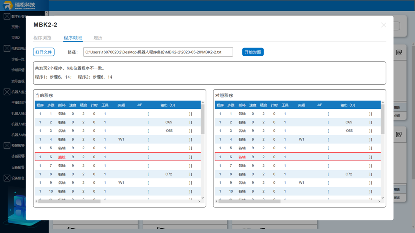 RIDP平臺上的設(shè)備運維管理系統(tǒng),可以對工位、報警次數(shù)、停線時長等各維度信息進行統(tǒng)計,方便跟蹤重點故障,實現(xiàn)報警數(shù)據(jù)可視化管理,保證數(shù)據(jù)的可追溯。用戶在系統(tǒng)上可以對機器人程序進行一鍵備份,快捷查閱系統(tǒng)預(yù)置的故障幫助文檔、各類設(shè)備信息、程序差分對照表等數(shù)據(jù),系統(tǒng)記錄了各類伺服參數(shù),方便用戶對參數(shù)的歷史修改進行前后比對,減少不同人員上線工作的溝通成本,和降低新增設(shè)備的時間,做到系統(tǒng)管理,提高效率。