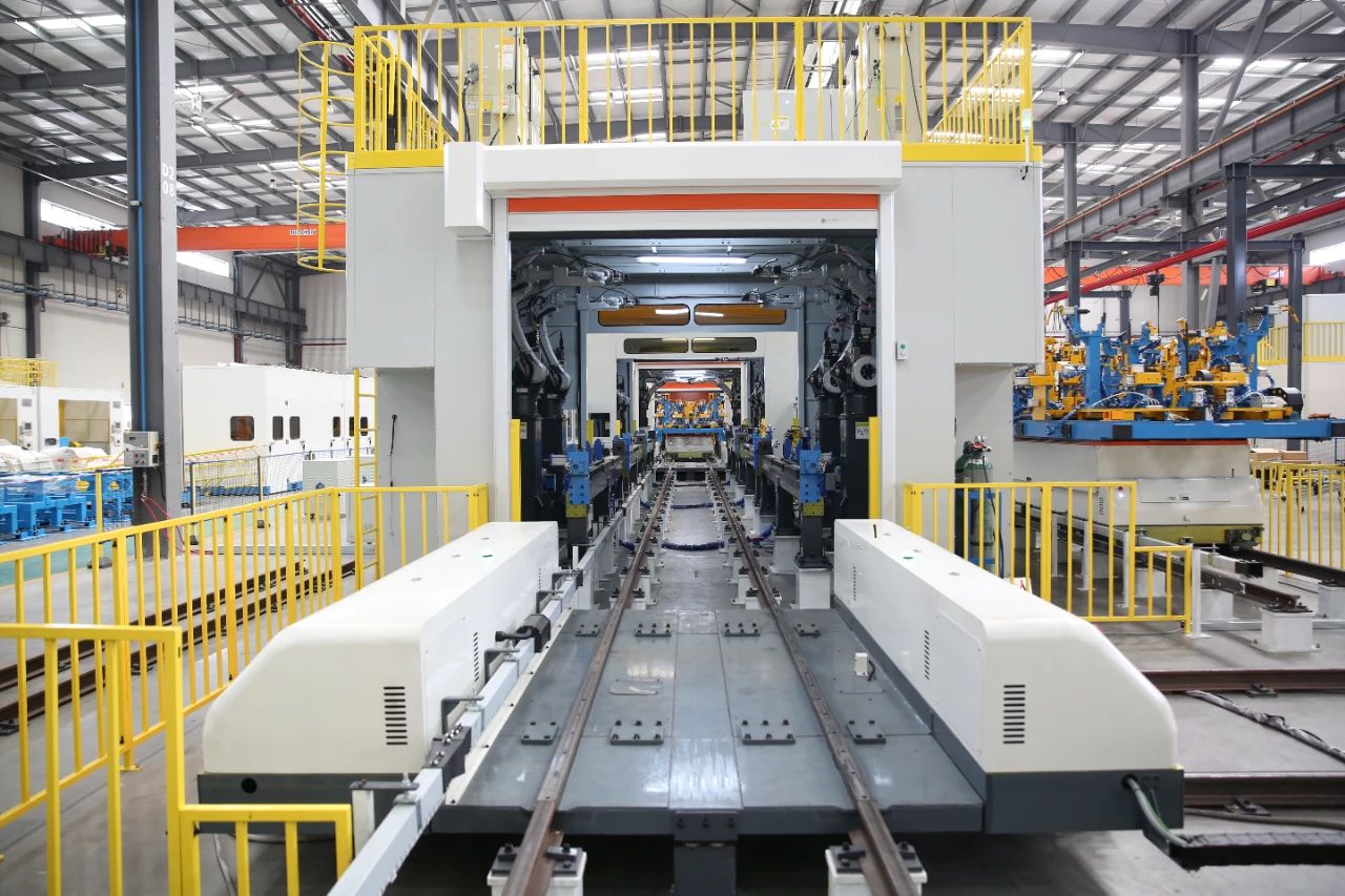該產(chǎn)線規(guī)劃平均年產(chǎn)量約5萬(wàn)臺(tái)。通過(guò)設(shè)置十字雙工位上料+四機(jī)器人焊接系統(tǒng)實(shí)現(xiàn)柔性切換和系統(tǒng)自動(dòng)程序調(diào)換功能,滿足不同機(jī)型的車架生產(chǎn)。采用了先進(jìn)MAG焊,通過(guò)數(shù)字化系統(tǒng)對(duì)焊縫進(jìn)行實(shí)時(shí)跟蹤,實(shí)現(xiàn)機(jī)器人焊槍對(duì)焊縫位置的精準(zhǔn)焊接。自主研發(fā)的子母循環(huán)搬運(yùn)機(jī)構(gòu),可以最大限度保證車架位置尺寸精度,實(shí)現(xiàn)車架焊接后的自動(dòng)搬運(yùn),減少現(xiàn)場(chǎng)作業(yè)人員的勞動(dòng)強(qiáng)度。