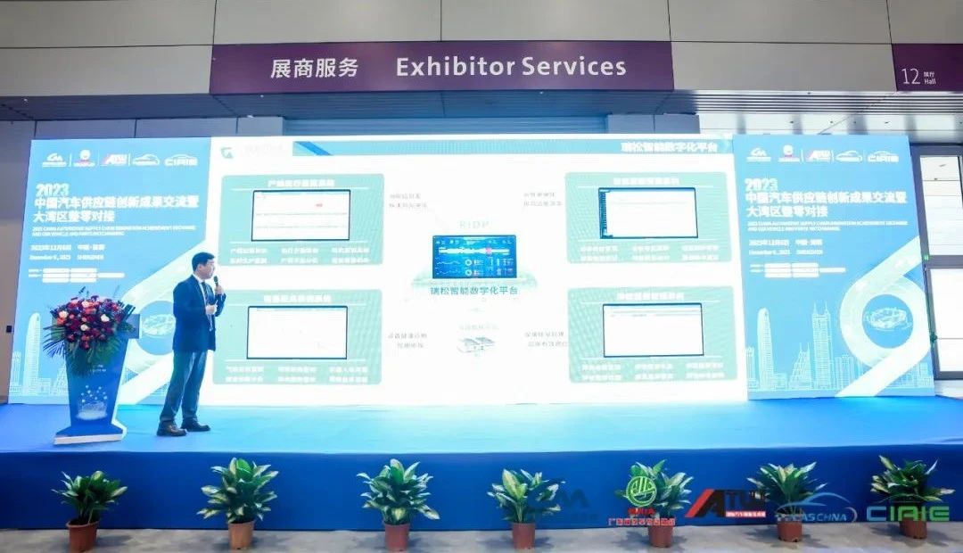 瑞松科技中日合資子公司廣州瑞松北斗汽車裝備有限公司(簡(jiǎn)稱瑞松北斗)受邀參加對(duì)接大會(huì),瑞松北斗總經(jīng)理張俊在交流會(huì)上發(fā)表了《智能數(shù)字化平臺(tái)賦能新能源汽車發(fā)展》主題演講,并推出公司創(chuàng)新成果——數(shù)字化平臺(tái)RIDP。